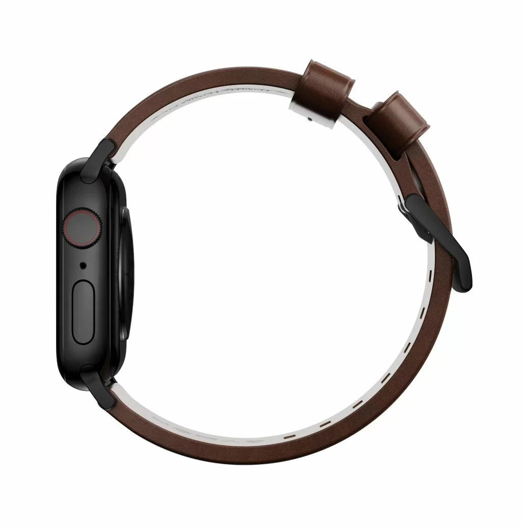 Ремешок Leather Strap от Nomad - разработанный, чтобы придать вашим интеллектуальным часам классический, но смелый новый вид Modern Strap изготовлен из минимально обработанной кожи растительного дубления из одной из старейших кожевенных мастерских Америки и нержавеющей стали. Качественная Horween кожа со временем создает патину, создавая богатый уникальный дизайн. Ремешок приятный на ощупь, регулируется под разный охват запястья.