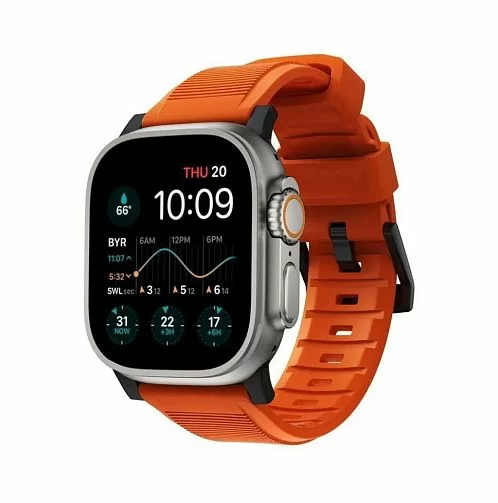 Ремешок Nomad Rugged Strap для Apple Watch 49/45/44/42 мм, силикон, оранжевый/черный