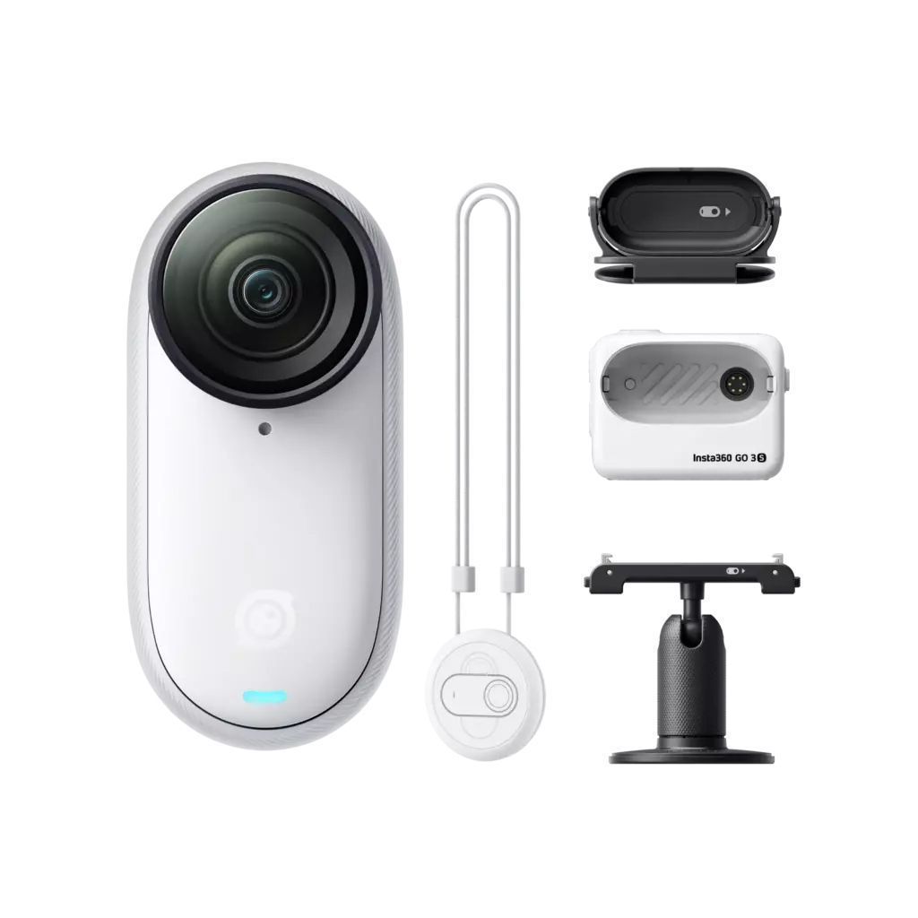 Insta360 GO 3S – самая маленькая 4K экшен камера в мире со ультра плавной стабилизацией. В комплекте кейс Action Pod с цветным откидным сенсорным дисплеем и богатый набор креплений.- Самая маленькая экшн-камера