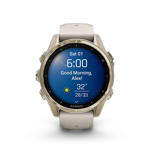 Умные часы Garmin Fenix 8 Sapphire AMOLED 43 мм, золотистый корпус, дымчато-серый ремешок