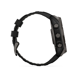 Garmin Fenix 8 — умные часы в титановом корпусе с поддержкой датчиков мониторинга здоровья, совместимы со смартфонами на ОС Android и iOS. Могут принимать звонки и сообщения. Есть функция голосового управления. С часами можно нырять в воду на глубину до 100 м.