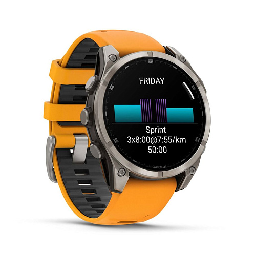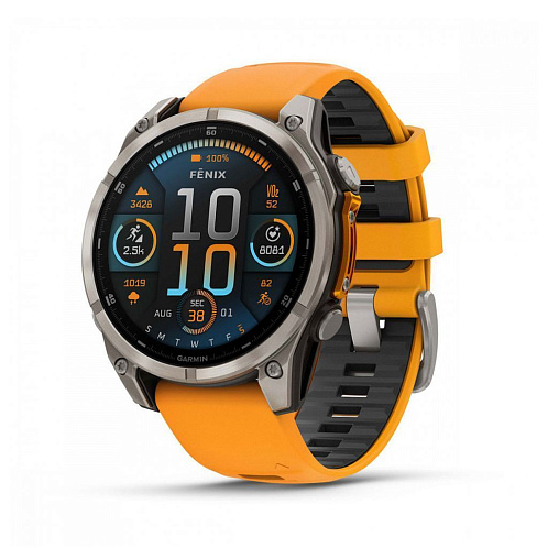 Умные часы Garmin Fenix 8 Sapphire AMOLED 47 мм, титан, ремешок - силикон, оранжевый/графит
