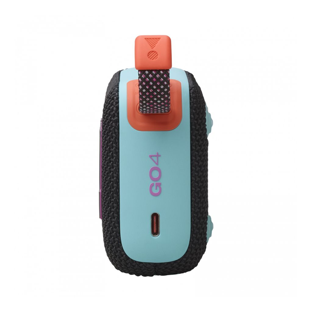 JBL GO 4 выполнена в ярких и стильных цветах, вдохновлённых последними модными тенденциями. Корпус сочетает прочную ткань и прорезиненные элементы для дополнительной защиты. Благодаря эргономичной форме и удобной петле, её можно закрепить на рюкзаке, велосипеде или просто носить в руке.