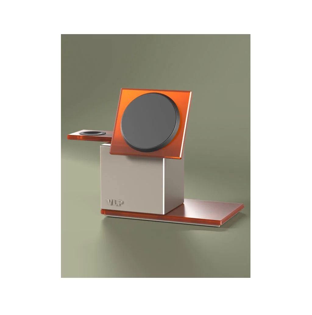 Станция стандарта Qi2.2 в алюминиевом корпусе с прозрачными элементами из поликарбоната — продолжение архитектурной эстетики коллекции NEO, созданной в коллаборации VLP со Студией Артемия Лебедева.