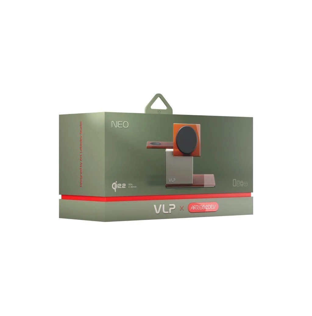 Беспроводная зарядная станция идеально совместима с сетевым зарядным устройством VLP NEO 45W (приобретается отдельно).