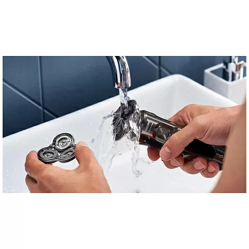 Бритва полностью герметична и водонепроницаема. Для очистки просто снимите бритвенную головку и промойте ее с обеих сторон под краном.